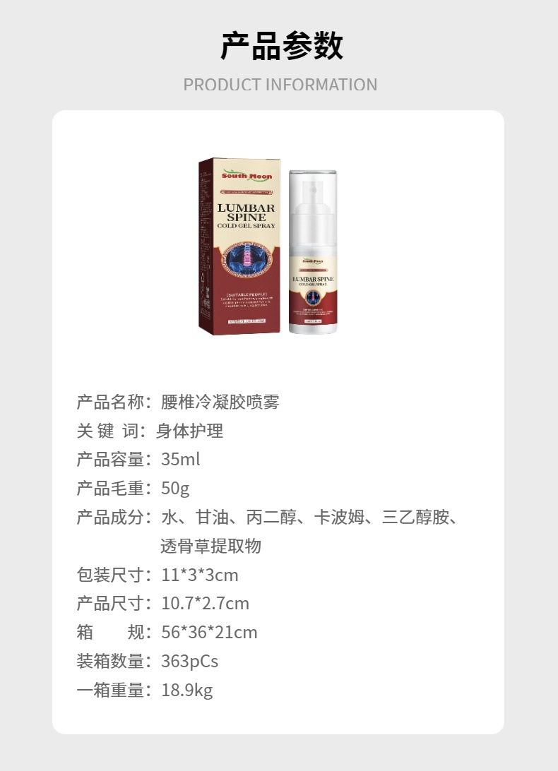 Features: Lumbar Condensation SprayStrictly select a variety of herbal formulas to care for joints.