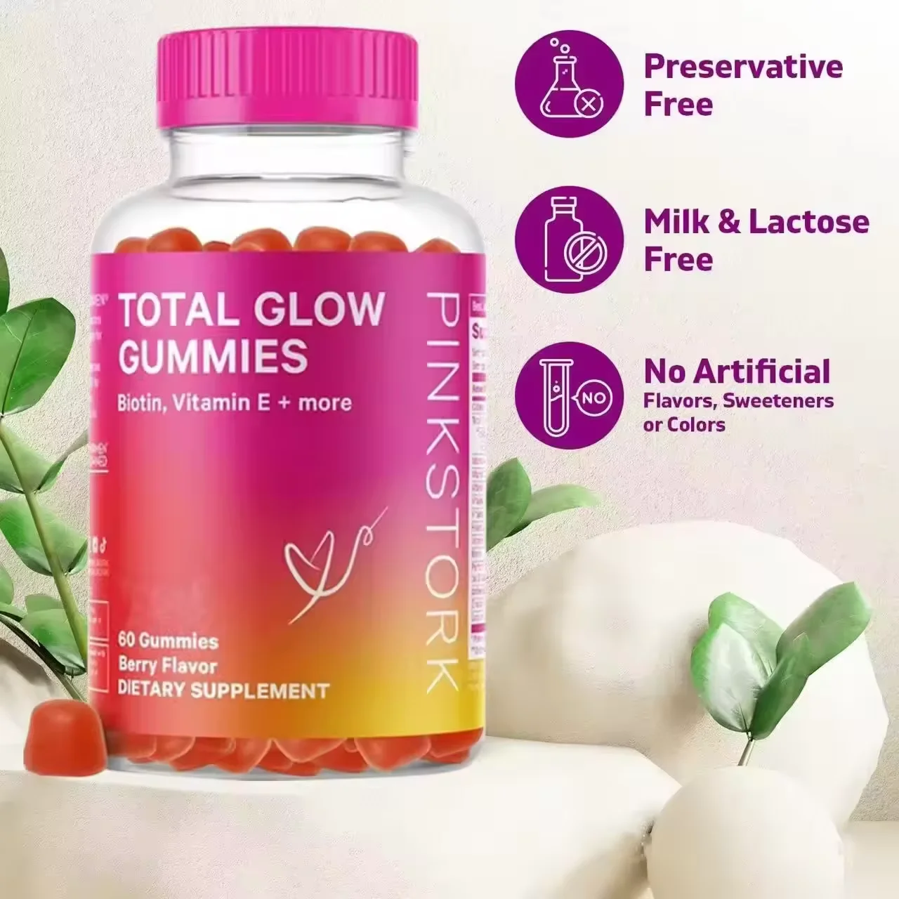 • Vitahealthy OEM/ODM Private Label Factory Supply Healthcare Products Beauty Gummies Total Glow Gummies for Skin Care Beauty